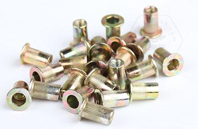 • 4.8級鍍彩平頭圓柱豎紋鉚螺母GB17880.1