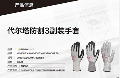 商品名稱:代爾塔 3副裝防割勞保工作手套 VENICUT43(3級耐磨4級防割)