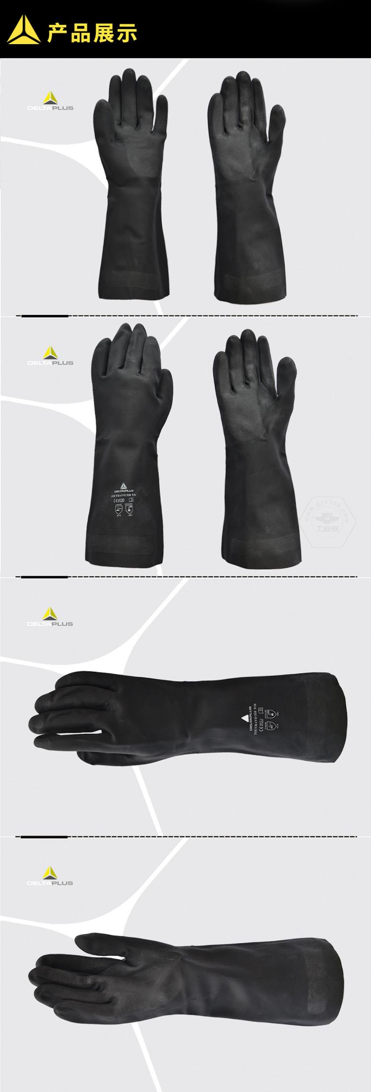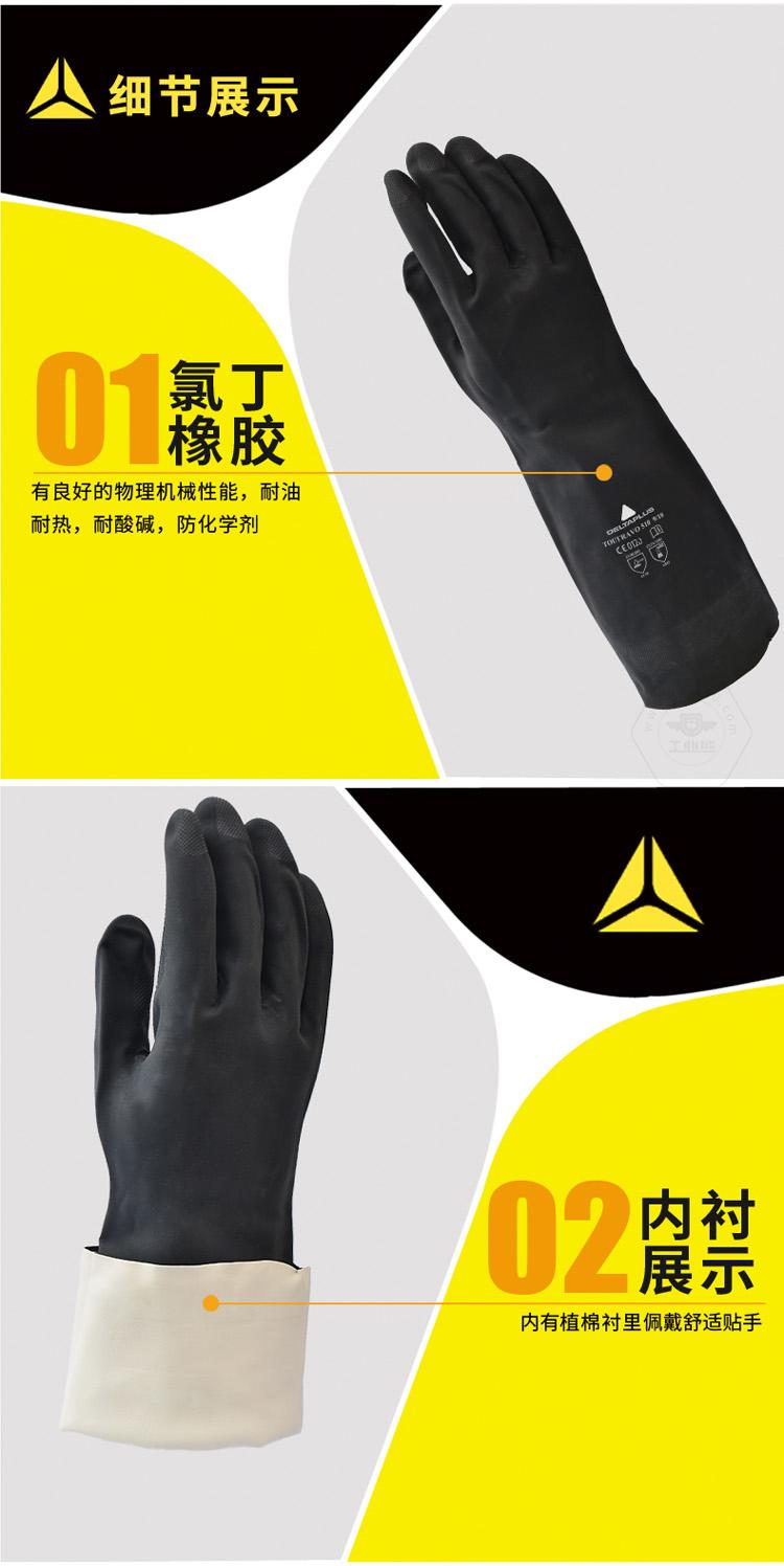 商品名稱:代爾塔 耐油耐熱防酸堿 工作勞保手套 防化防護(hù)手套 勞保用品 201510 黑色 一副(2只)