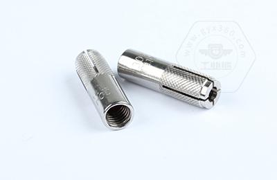 1、內(nèi)部有小鋼柱,尾部有內(nèi)絲扣,釘入墻孔后,將絲桿擰進,則小鋼柱被不斷擠壓,頭部爆裂開來和墻孔產(chǎn)生摩擦力,從而固定。