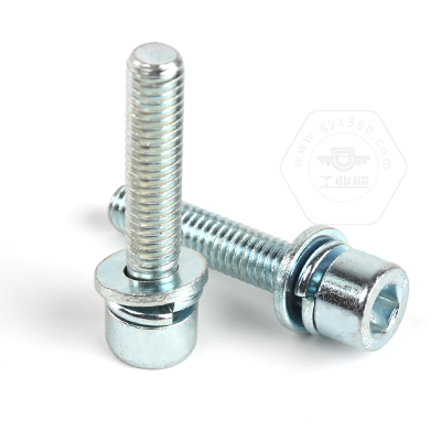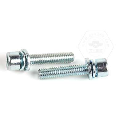 • 工業(yè)熊碳鋼8.8級藍白鋅內(nèi)六角圓柱頭帶平彈墊組合螺釘(無滾花)DIN912平彈墊三組合